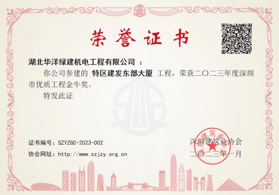 2023/01/18 深圳特區建發(fā)東部大廈項目榮獲“深圳市優(yōu)質工程金牛獎”